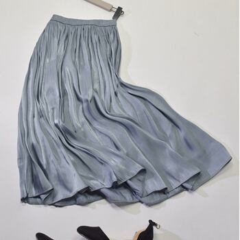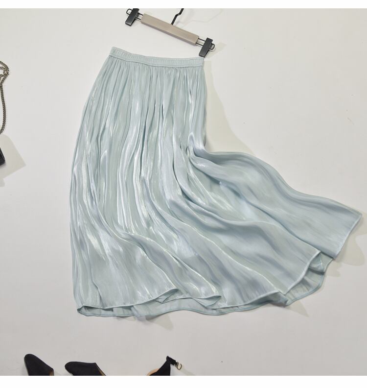 キラキラ 光沢 サテン プリーツ ミディアム スカート 春 秋 カジュアル レディース 大人 女子 安い 通販 771