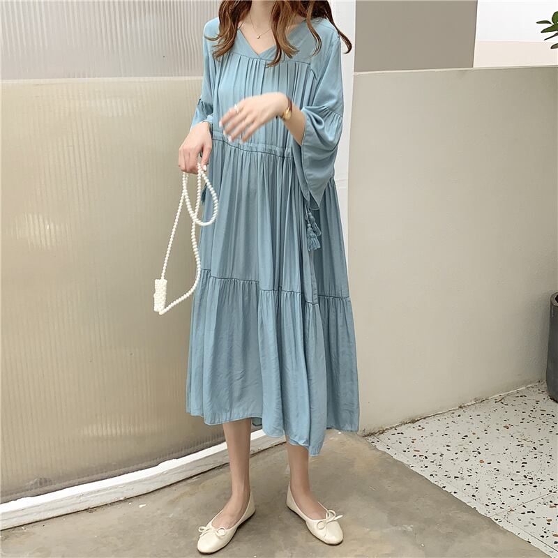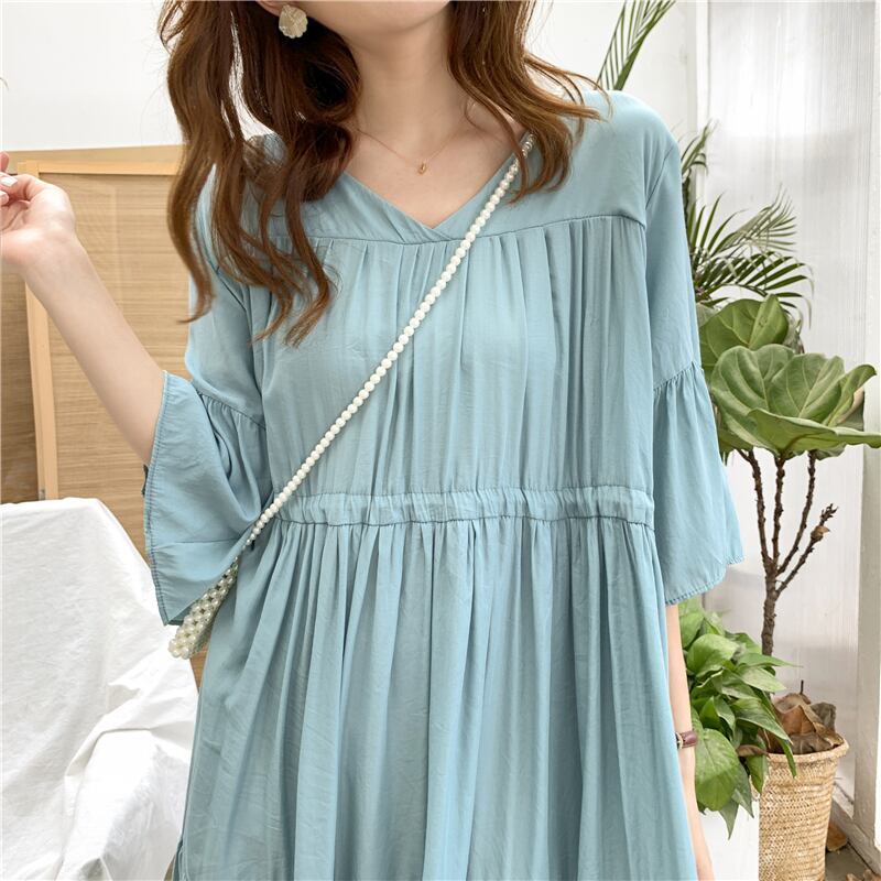 ・春 夏 大きいサイズVネックゆったりワンピースです。