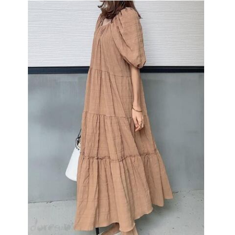 大きいサイズ Vネック ゆったり バブルスリーブ リラクシー ワンピース ドレス 半袖 カジュアル 春 夏 安い 通販 4l 3l 2l 782