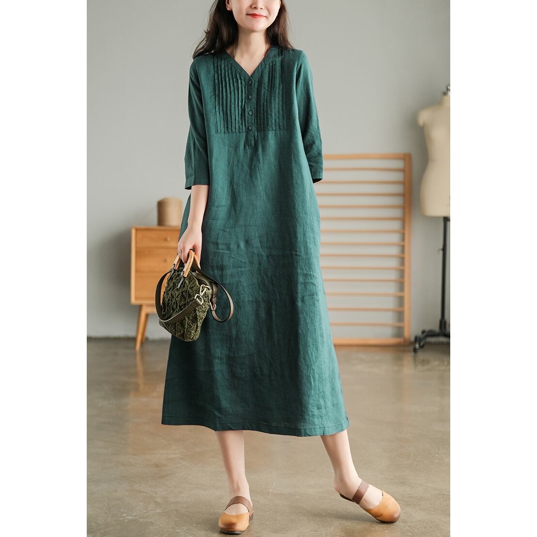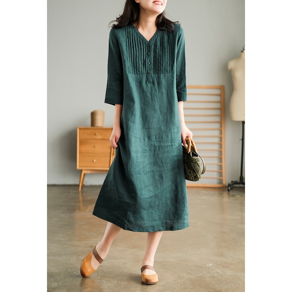 ・Vネック カジュアル コットンドレスです。