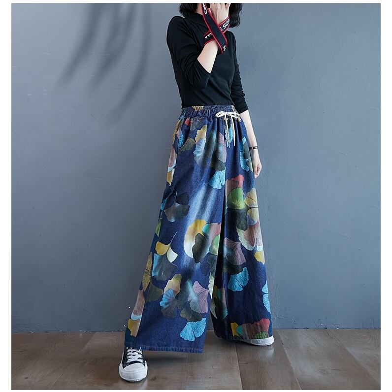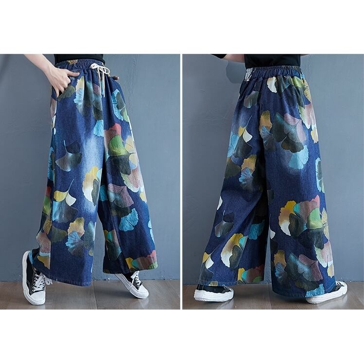 大きい サイズ プリント デニム ワイドパンツ 春コーデ セットアップ ワイド コーデ かわいい 通販 808