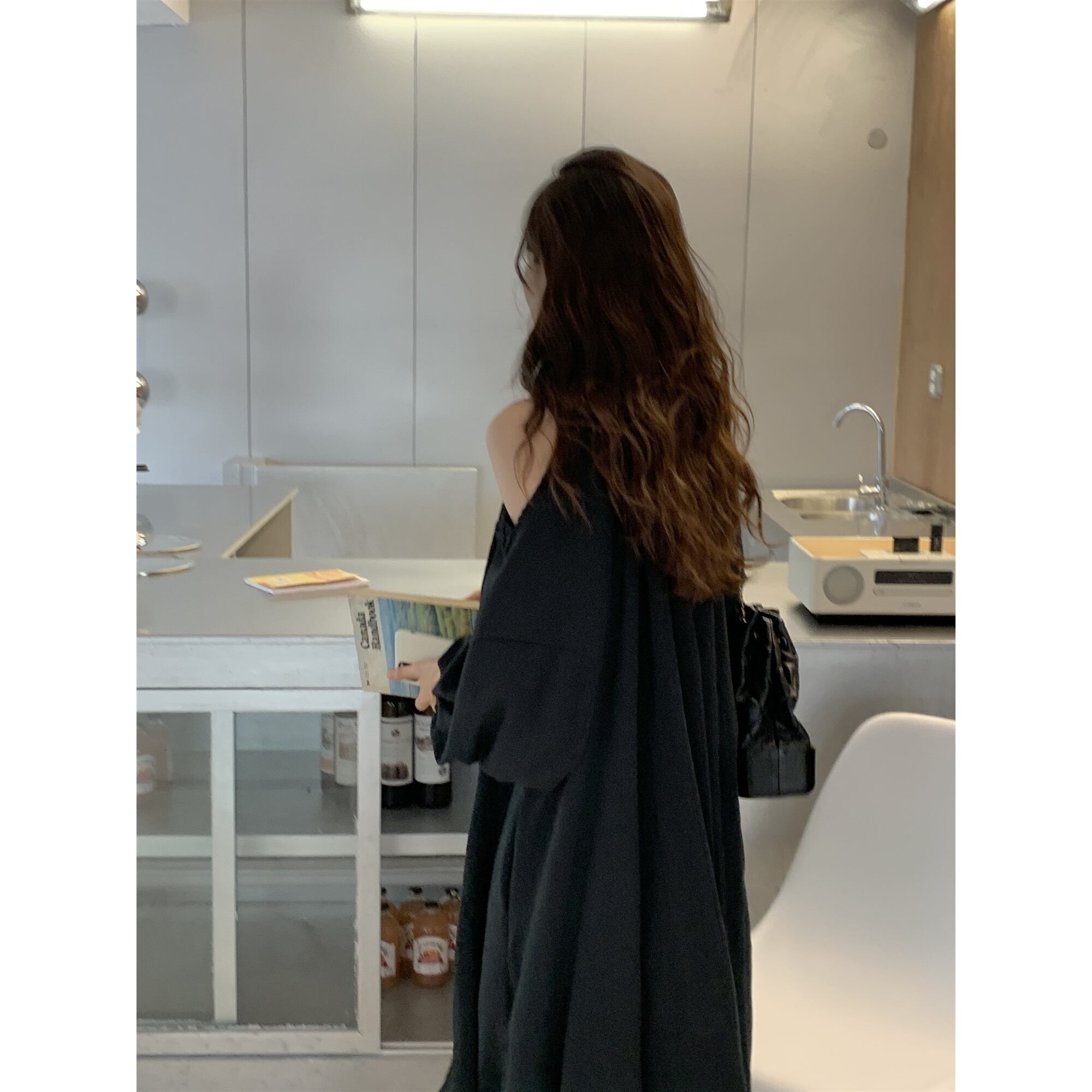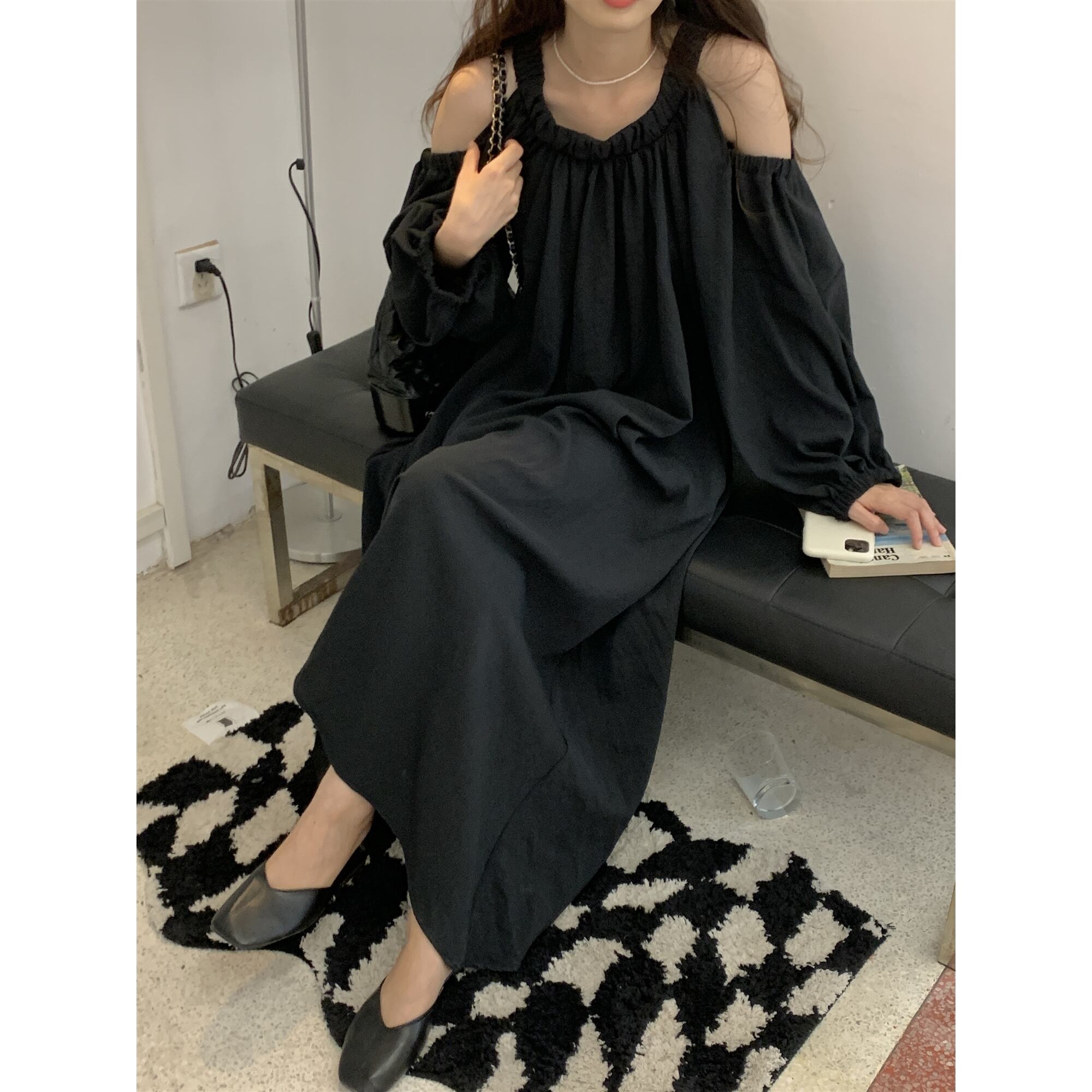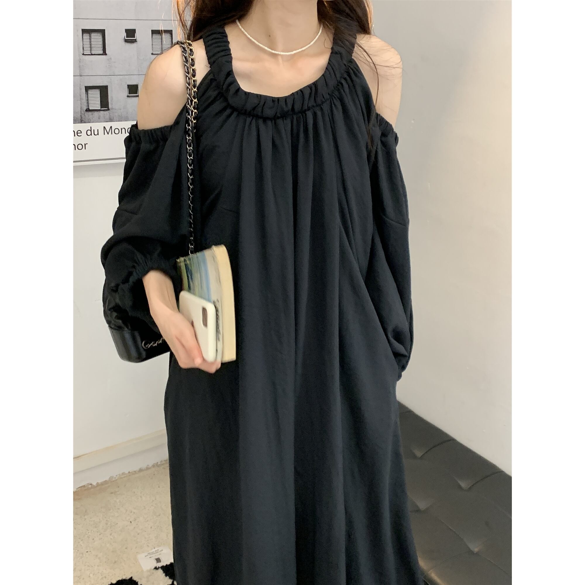 大きいサイズ レディース オフショルダー 長袖 ミディアム スカート ドレス きれいめ ワンピースドレス 可愛い 黒 春 きれいめ コーデ 重ね着 ゆったり おしゃれ ゆったりめ リゾート カジュアルコーデ 安い 大人 海外 通販 837