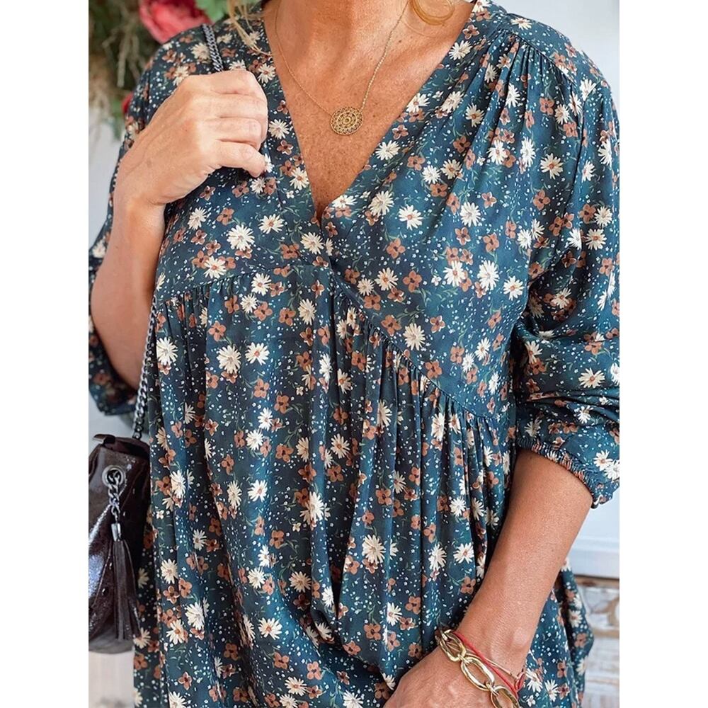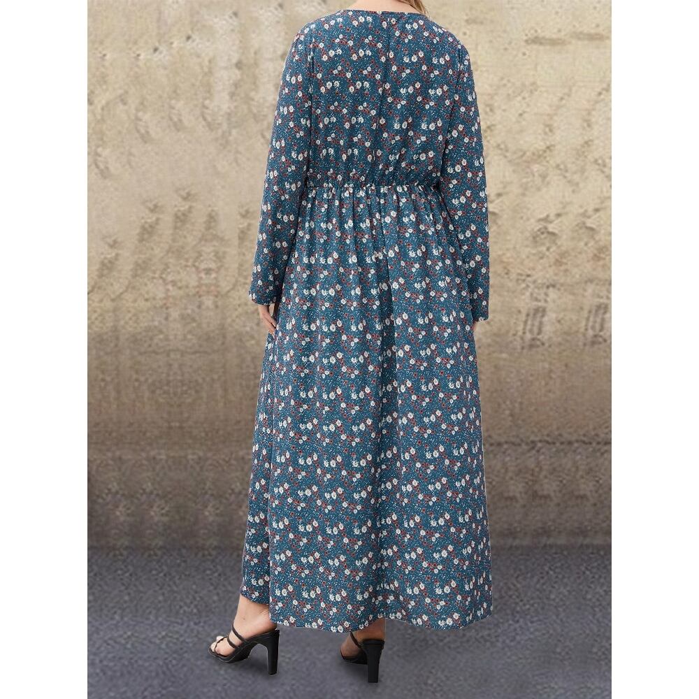5XL - XL 大きいサイズ レディース Vネック 長袖 花柄 ロング セクシー ワンピース 春 秋 コーデ フェミニン ロングワンピース 大きいサイズの店 安い 通販 5l 4l 841