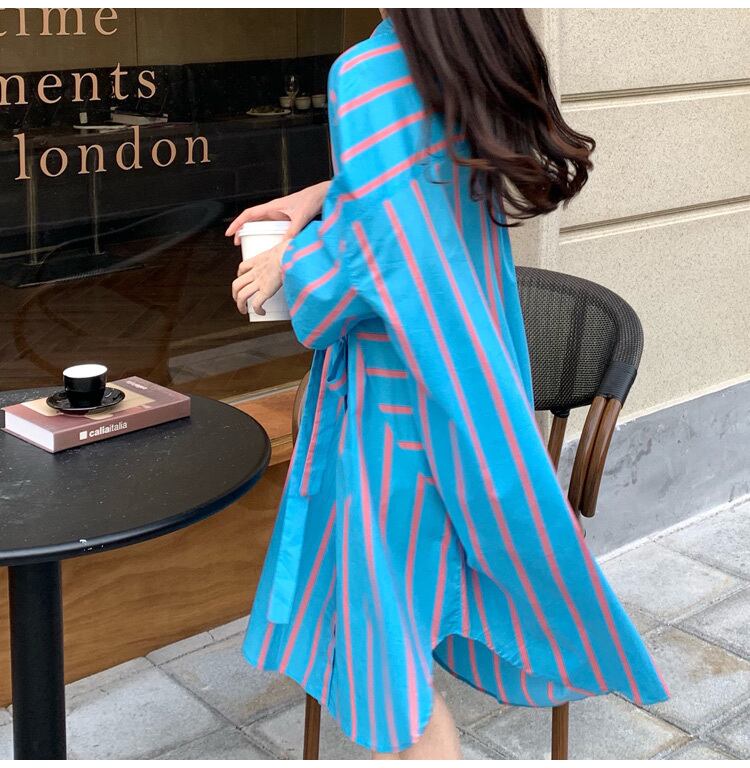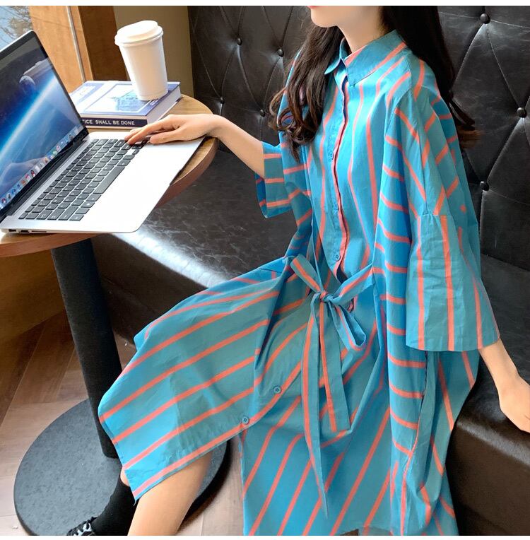 ストライプ半袖ロングシャツ