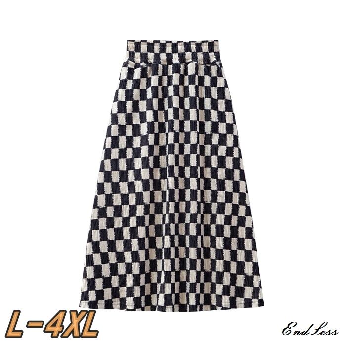 4XL - L ゆったり チェック柄 ハイウエスト aライン スカート 春 夏 黒スカート 大きいサイズ レディイース ファッション コーデ オフィス 柄 ロング タイト スカートロング 膝丈 ハイウエストスカート 女子 大人 大きいサイズの店 通販 4l 3l 2l 862