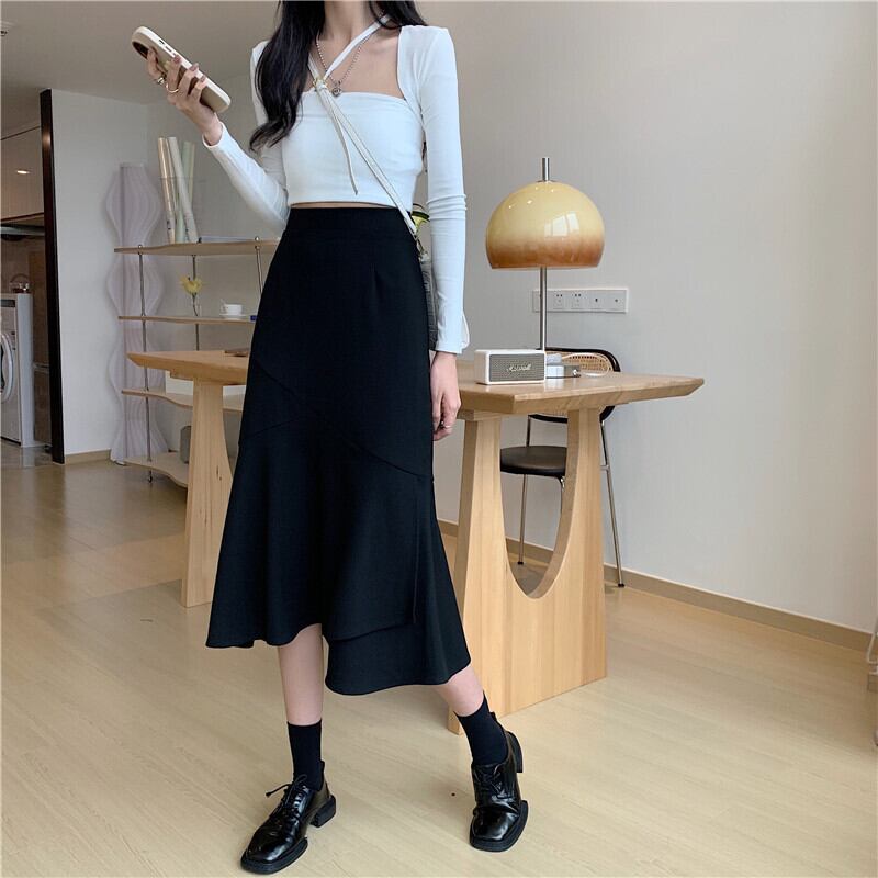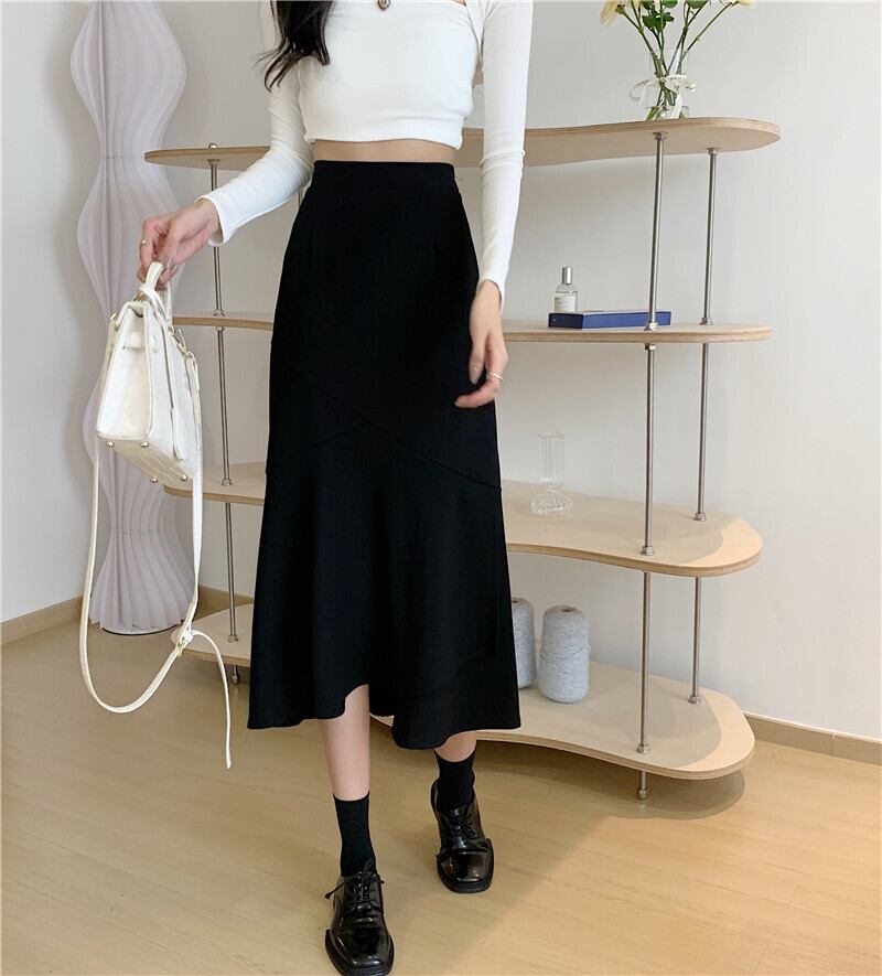 4XL - L フィッシュテール ミディマム丈 aライン カジュアル スカート 黒 春服 大きいサイズ レディイース ファッション コーデ オフィス 柄 ロング タイト スカートロング 膝丈 ハイウエストスカート 女子 大人 大きいサイズの店 通販 4l 3l 2l 863