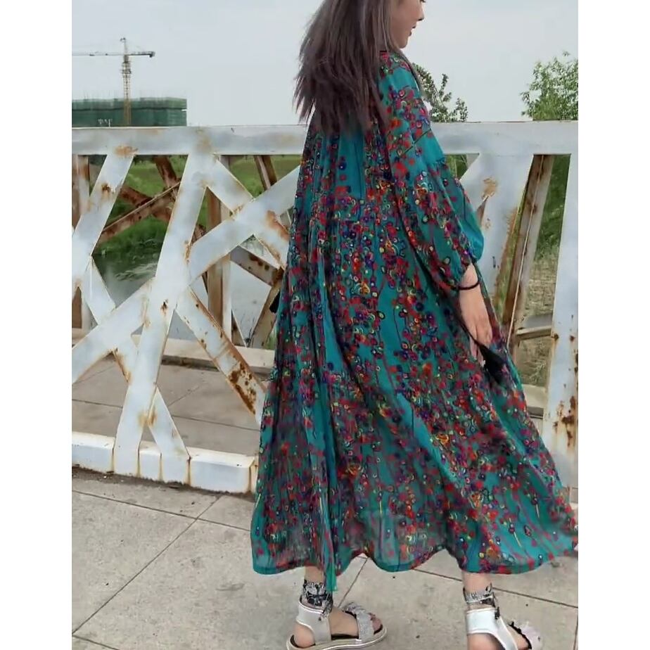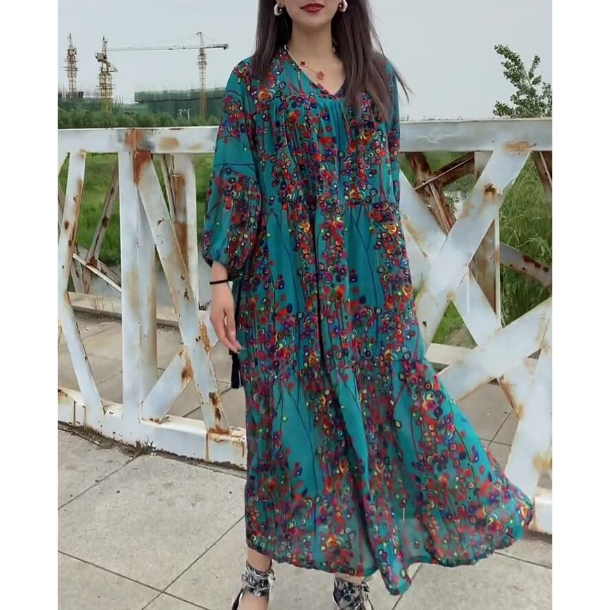 5XL - 3XL 大きいサイズ 花柄 ドレス 大きいサイズの店 ワンピース 大きいサイズレディース ロングワンピース ロングスカート 長袖ワンピース 安い 海外 5l 4l 870