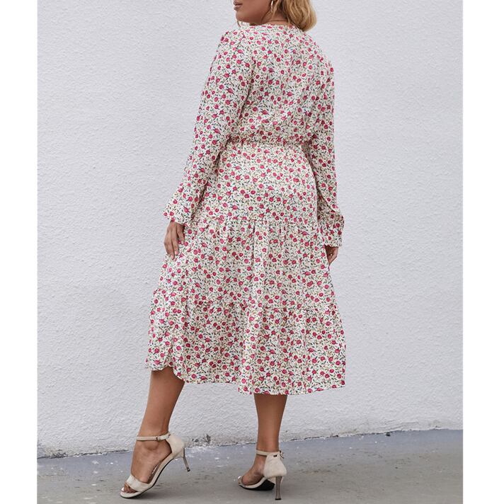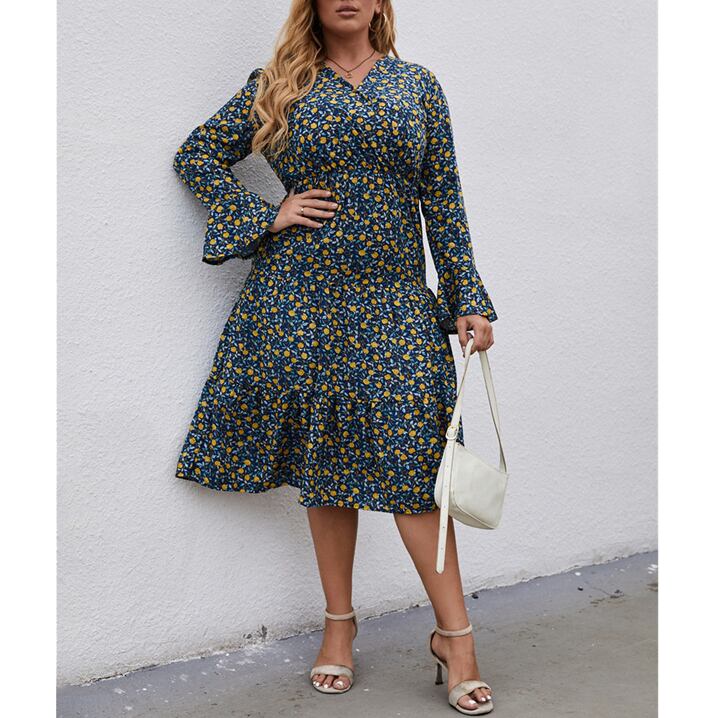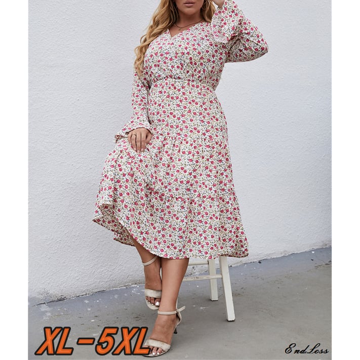 5XL - XL 大きいサイズ 花柄 ドレス 長袖 春 秋 大きいサイズの店 ワンピース 大きいサイズレディース ロングワンピース ロングスカート ワンピース 安い 海外 5l 4l 873 873