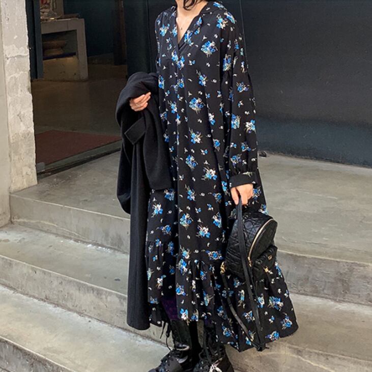 花柄 ロングスカートドレス