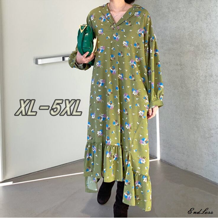 5XL - XL 大きいサイズ 花柄 ドレス 長袖 ゆったり ロング ドレス 春 夏 大きいサイズの店 ワンピース 大きいサイズレディース ロングワンピース ロングスカート ワンピース 安い 海外 5l 4l 875