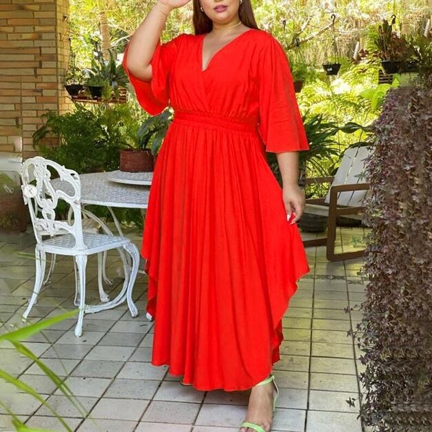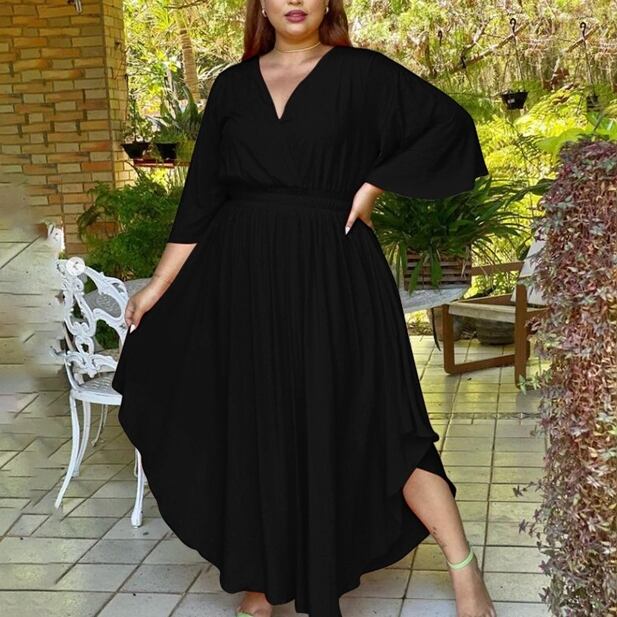 4XL - L ゆったり 半袖 カジュアル ロング ドレス ワンピース 黒 大きいサイズ レディース 大きいサイズの店 通販 安い 4l 3l 890