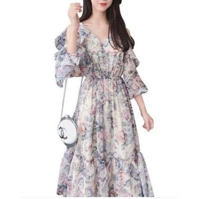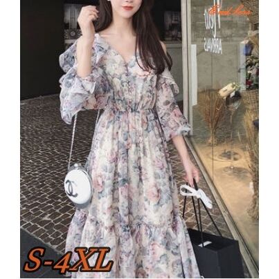 L - 4XL ゆったり 花柄 ミディアム丈 スカート カジュアル ドレス 長袖 大きいサイズ レディース 大きいサイズの店 通販 安い 5l 4l 3l 895