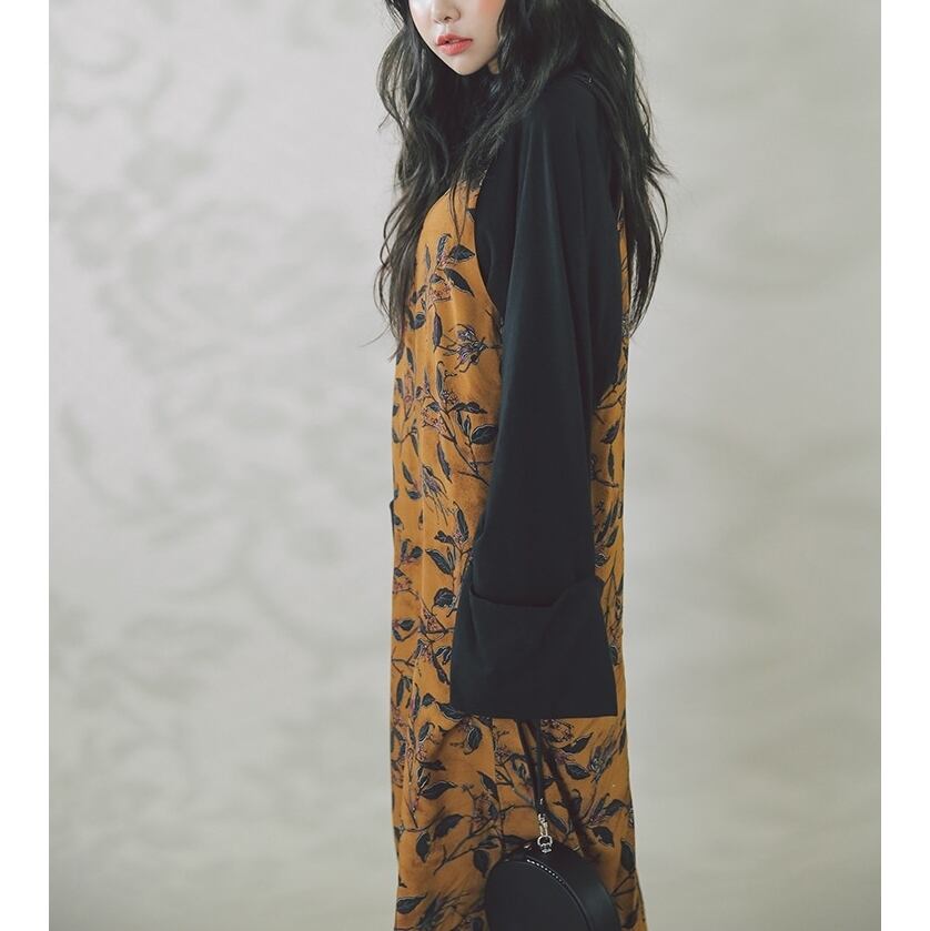 ・春 夏 ゆったりスリーブ 花柄ワンピースです。