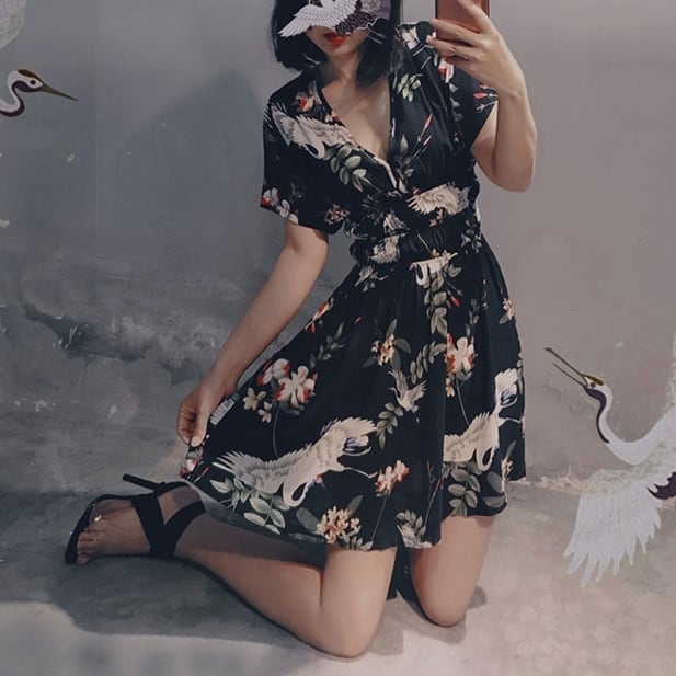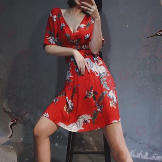 4XL - XL 花柄 ヴィンテージ Vネック Aライン ドレス セクシー ワンピース ドレス グラマー 夏 大きいサイズ レディース 大きいサイズの店 通販 安い 4l 3l 904