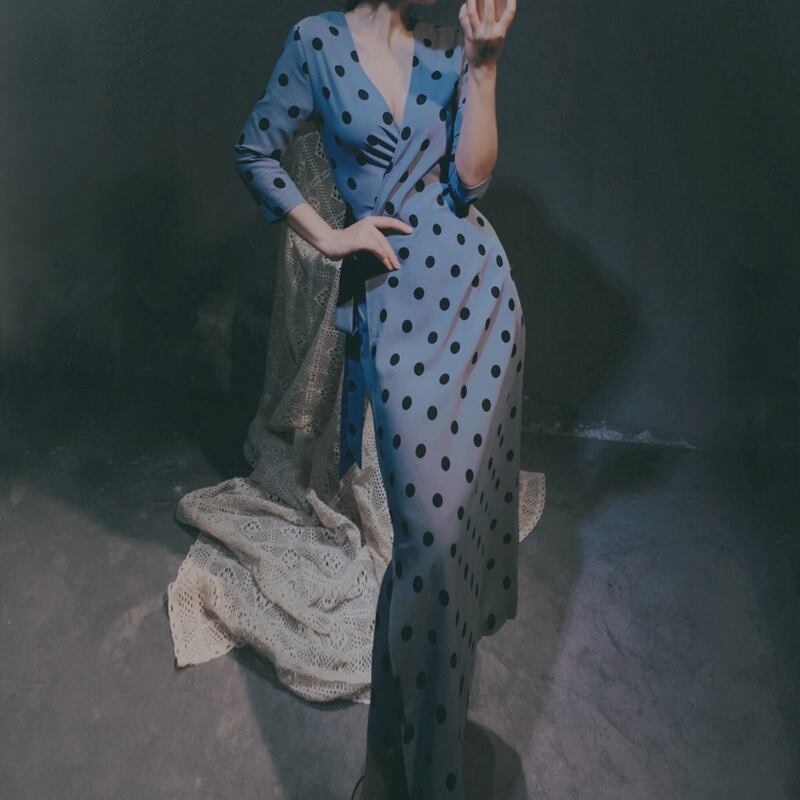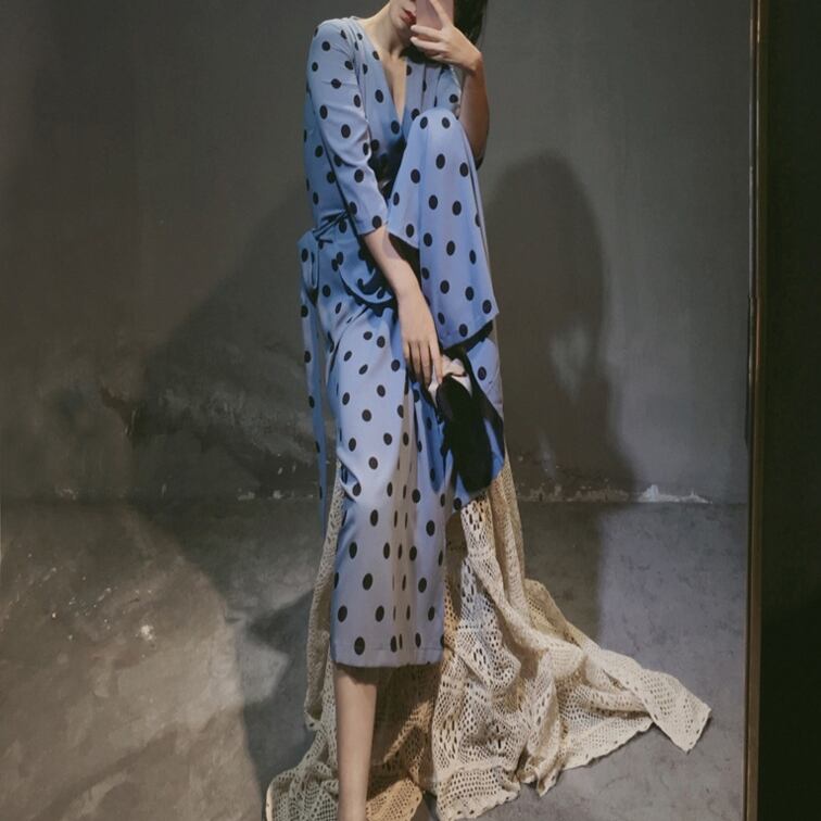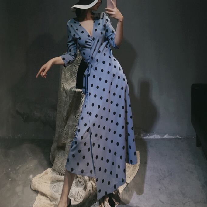 5XL - S ドット柄 レトロ セクシー Vネック ロング ドレス グラマー 夏 大きいサイズ レディース 大きいサイズの店 通販 安い 5l 4l 3l 906