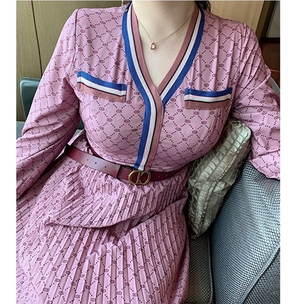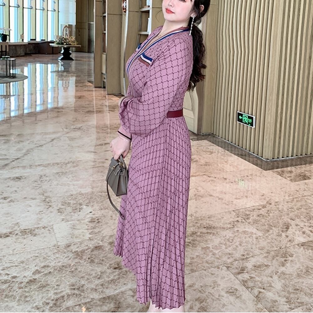 5XL - L 長袖 ロングスリーブ エレガント プリーツ スカート カジュアル ドレス グラマー 春 秋 大きいサイズ レディース 大きいサイズの店 通販 安い 5l 4l 3l 910