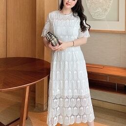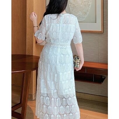 5XL - L レース パイナップル 刺繍 半袖 フェアリー カジュアル ドレス グラマー 春 秋 大きいサイズ レディース 大きいサイズの店 通販 安い 5l 4l 3l 911
