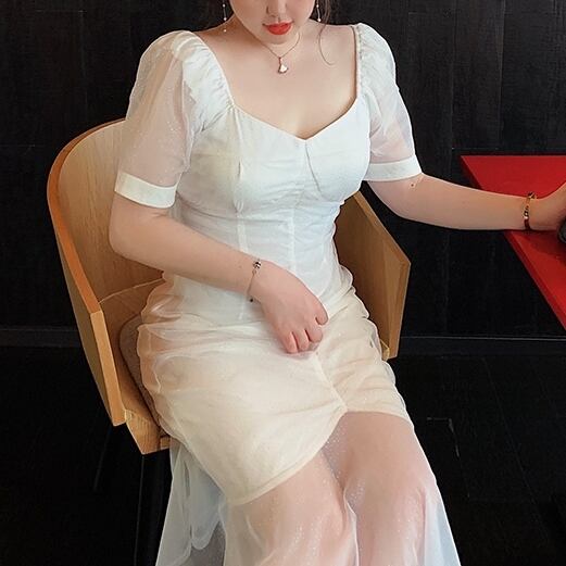 5XL - L レース ステッチ ホワイト プリーツスカート パーティー ドレス グラマー 春 夏 大きいサイズ レディース 大きいサイズの店 通販 安い 5l 4l 3l 913