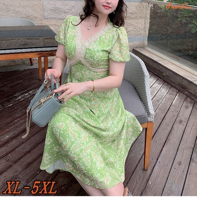 5XL - L Vネック 半袖 サマー プリント カジュアル ドレス グリーン グラマー 夏 大きいサイズ レディース 大きいサイズの店 通販 安い 5l 4l 3l 923