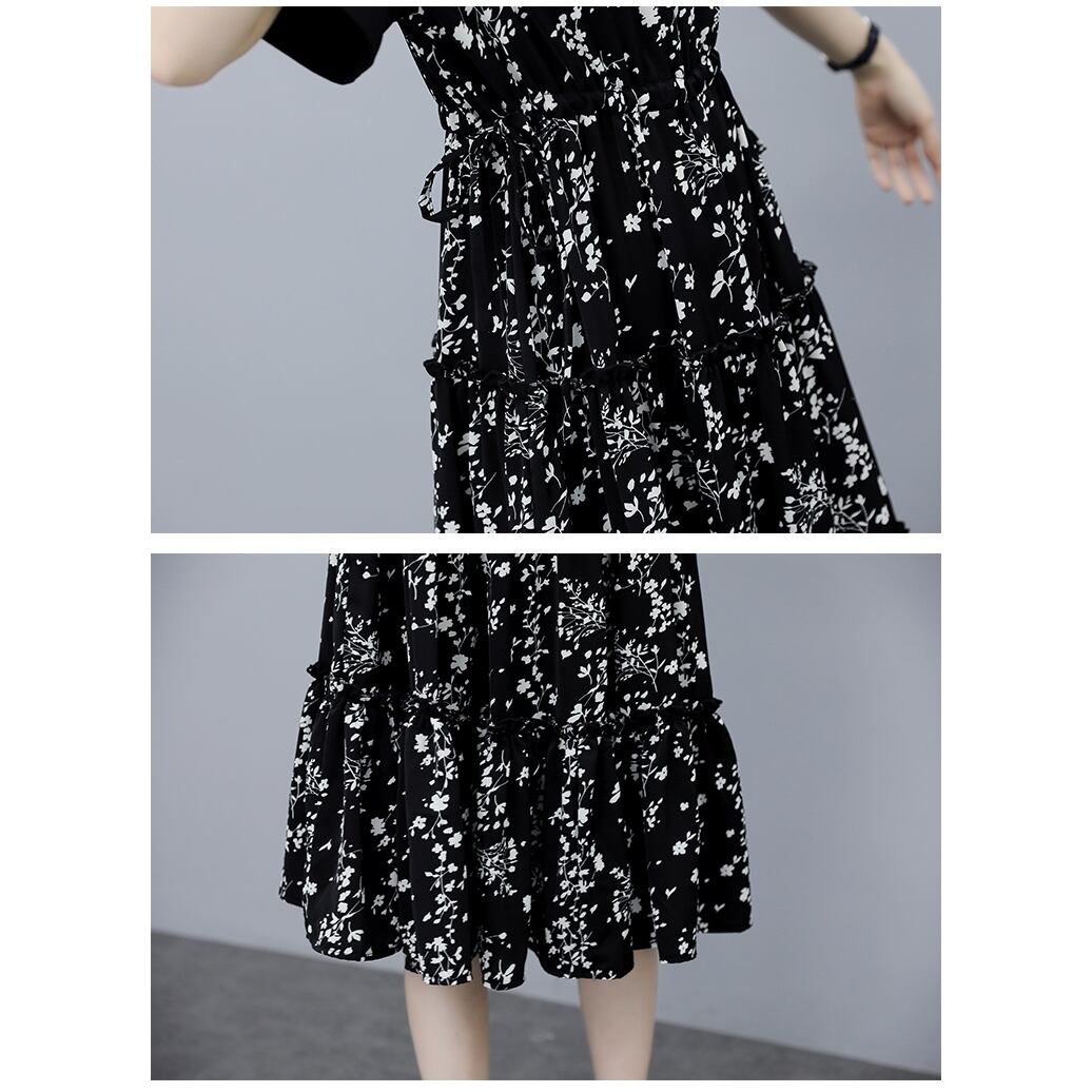 5XL - L 花柄 ビンテージ 半袖 プリーツスカート カジュアル ワンピース ブラック グラマー 夏 大きいサイズ レディース 大きいサイズの店 通販 安い 4l 3l 941