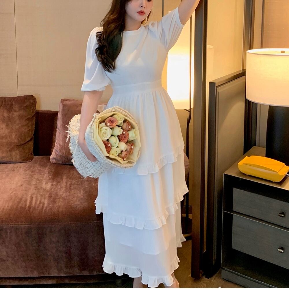 4XL - M 半袖 バック エッジ ケーキスカート ロング ドレス サマー 白 グラマー 夏 大きいサイズ レディース 大きいサイズの店 通販 安い 4l 3l 951