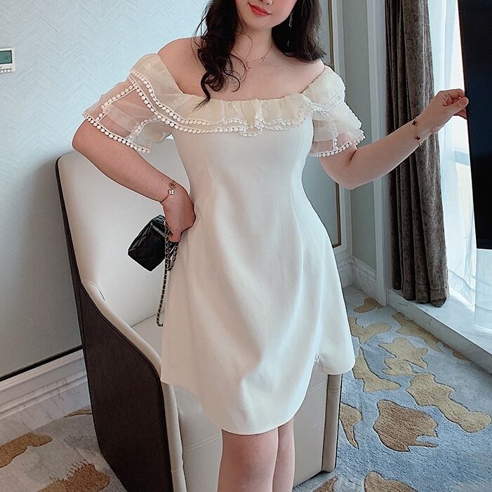 5XL - L ゆったり 半袖 シフォン パーティー サマー ドレス 白 グラマー 夏 大きいサイズ レディース 大きいサイズの店 通販 安い 4l 3l 952