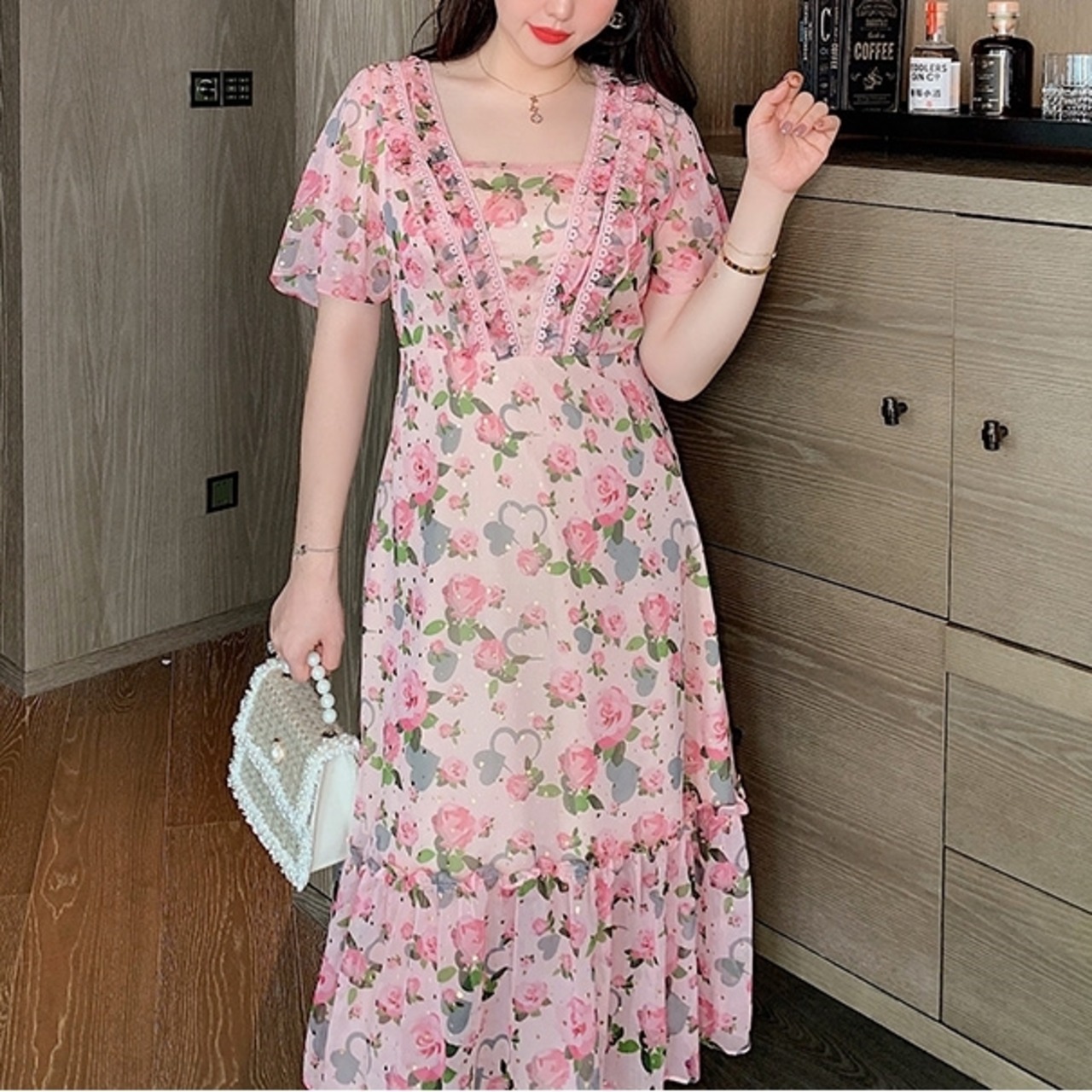 5XL - L ゆったり 花柄 ローズ プリント ファッション サマー ドレス ワンピース グラマー 夏 大きいサイズ レディース 大きいサイズの店 通販 安い 5l 4l 3l 953