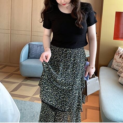 5XL - L 半袖 ブラック Tシャツ ハイウエスト ケーキ スカート ゆったり グラマー 春 夏 大きいサイズ レディース 大きいサイズの店 通販 安い 5l 4l 3l 2l 974