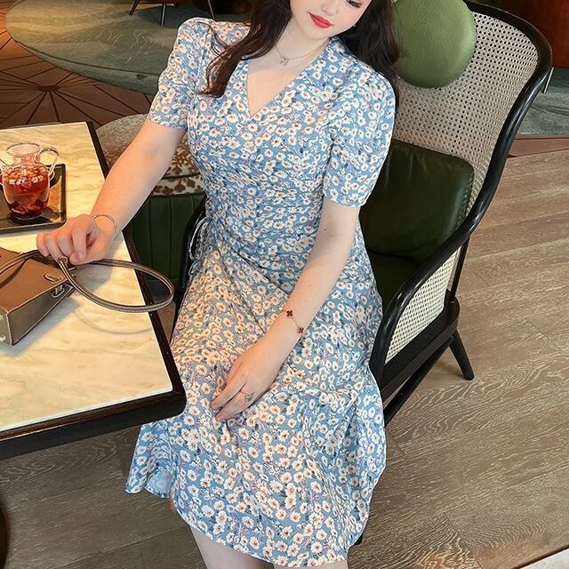 5XL - L 花柄 vネック カジュアル サマー ドレス ゆったり グラマー 春 夏 大きいサイズ レディース 大きいサイズの店 通販 安い 5l 4l 3l 2l 976