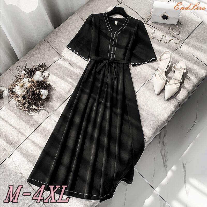 4XL - M 半袖 ウエストスリング ボタン カジュアル ワンピース ドレス ゆったり グラマー 春 夏 大きいサイズ レディース 大きいサイズの店 通販 安い 4l 3l 2l 986