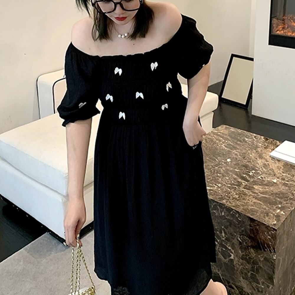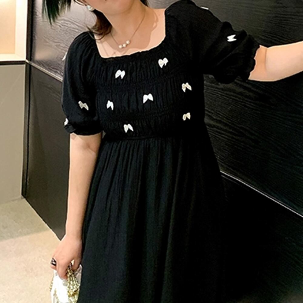 ・大きいサイズ 蝶ステッチ カジュアルドレス ワンピースです。