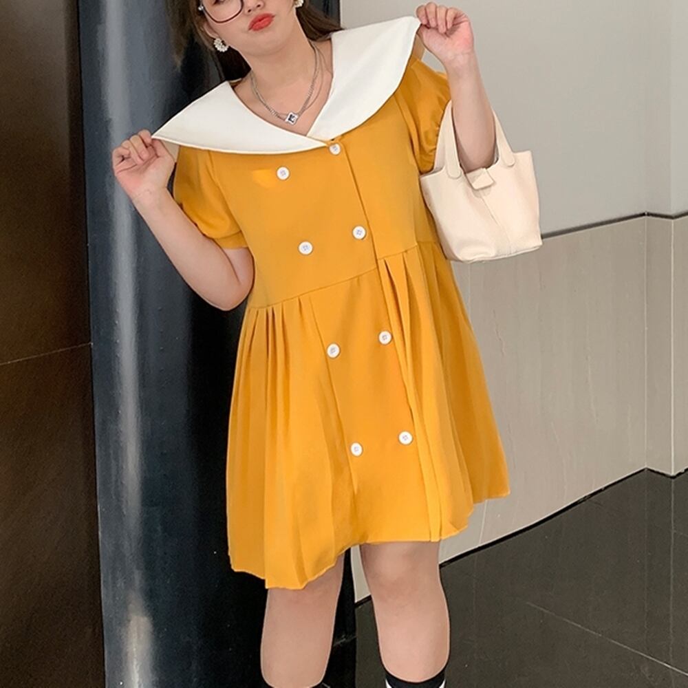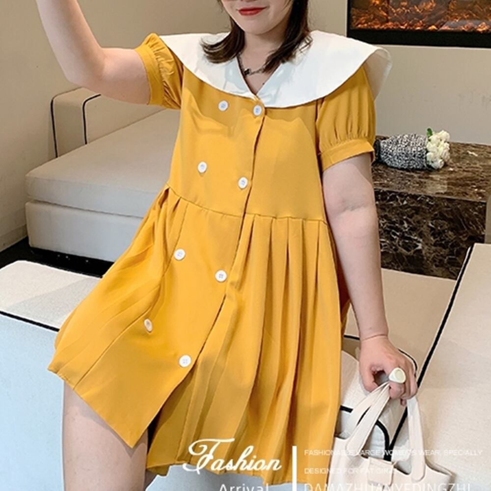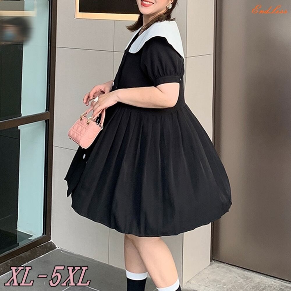 5XL - L レトロ スーツ スカート ウエスト Aライン 半袖 ドレス ワンピース ゆったり グラマー 春 夏 大きいサイズ レディース 大きいサイズの店 通販 安い 5l 4l 3l 2l 989