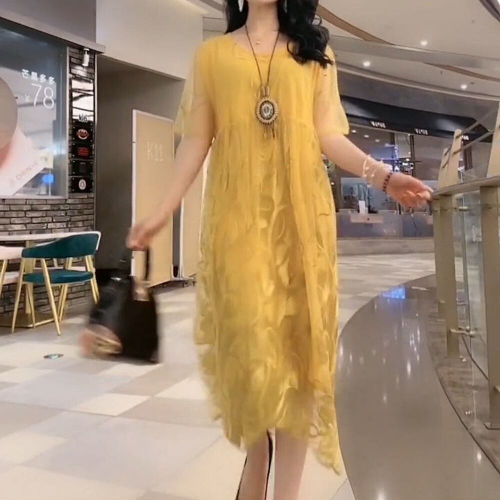 5XL -M ヴィンテージ 半袖 刺繍ステッチ スキニー カジュアル ドレス ゆったり グラマー 春 夏 大きいサイズ レディース 大きいサイズの店 通販 安い 5l 4l 3l 2l 999