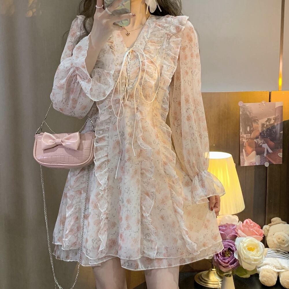 5XL -S ビッグサイズ 花柄 長袖 トランペットスリーブ カジュアル ドレス ゆったり グラマー 春 夏 大きいサイズ レディース 大きいサイズの店 通販 安い 5l 4l 3l 2l 1000