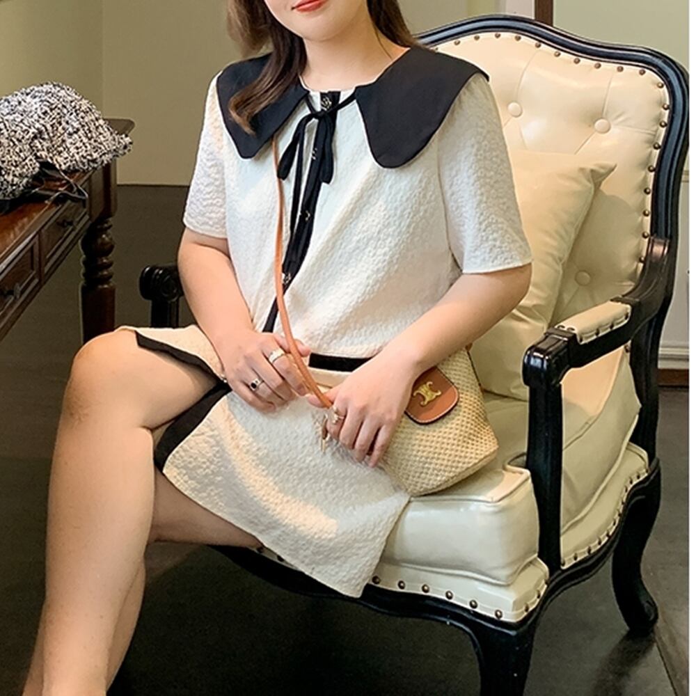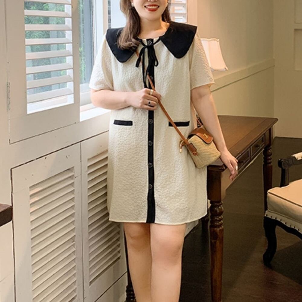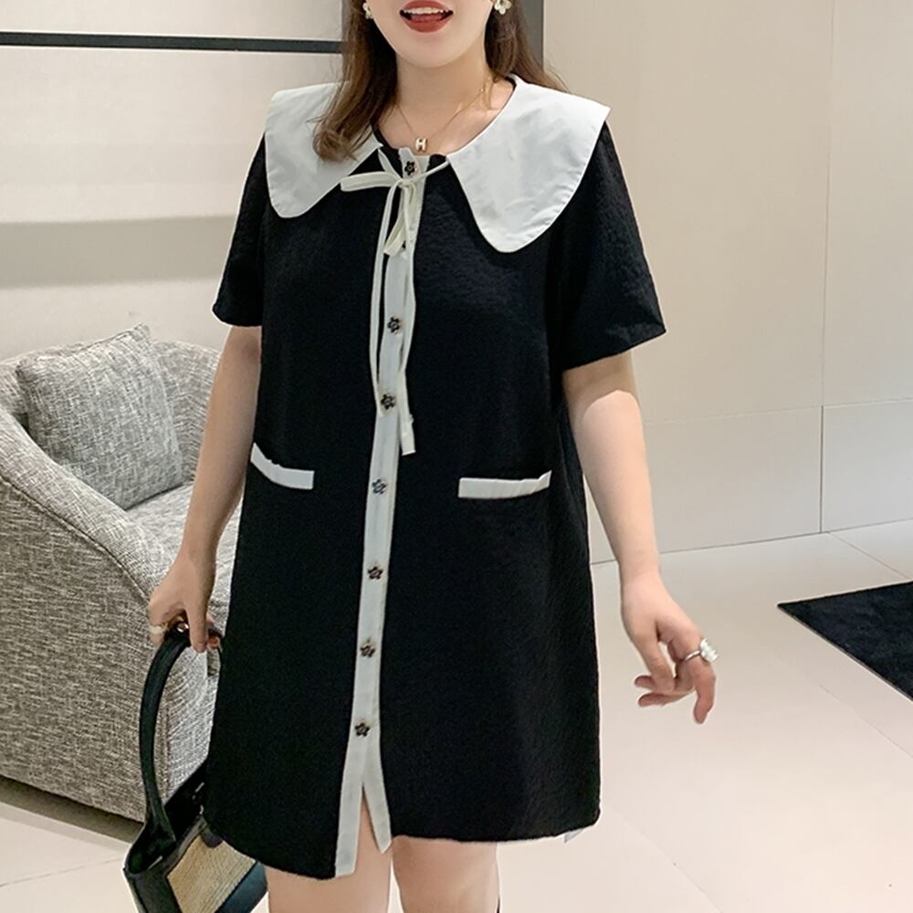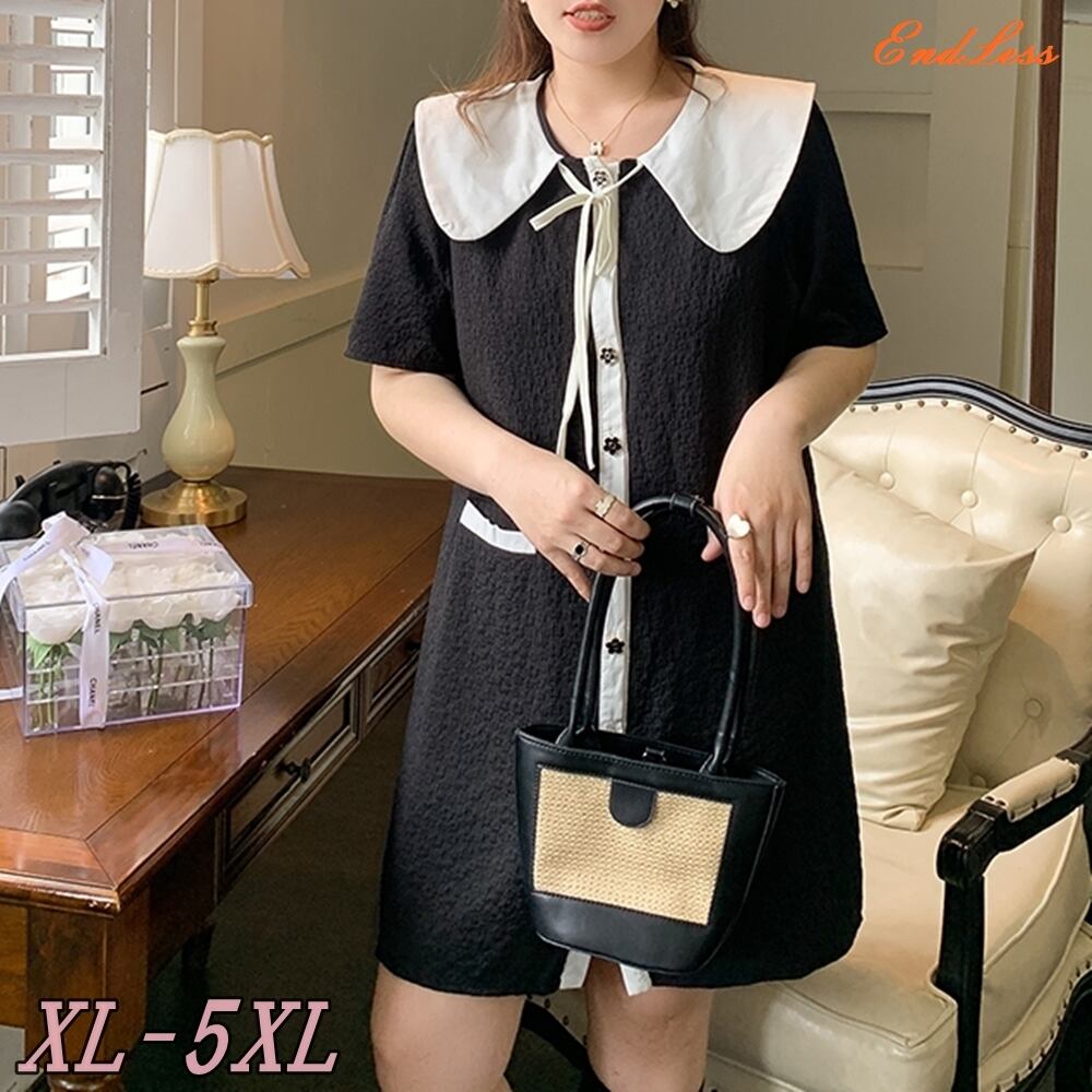 5XL -XL レトロ スクエアネック 半袖 ルーズ カジュアル ワンピース ゆったり グラマー 春 夏 大きいサイズ レディース 大きいサイズの店 通販 安い 5l 4l 3l 2l 1003