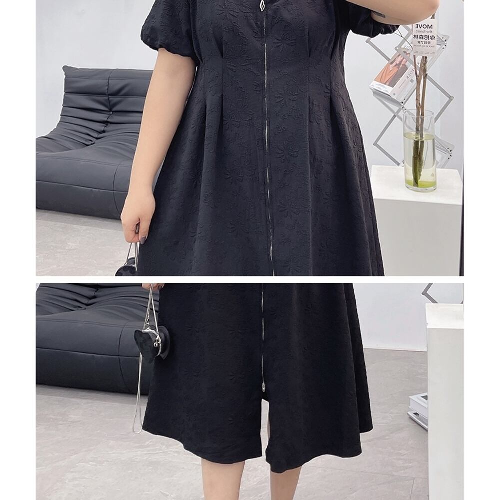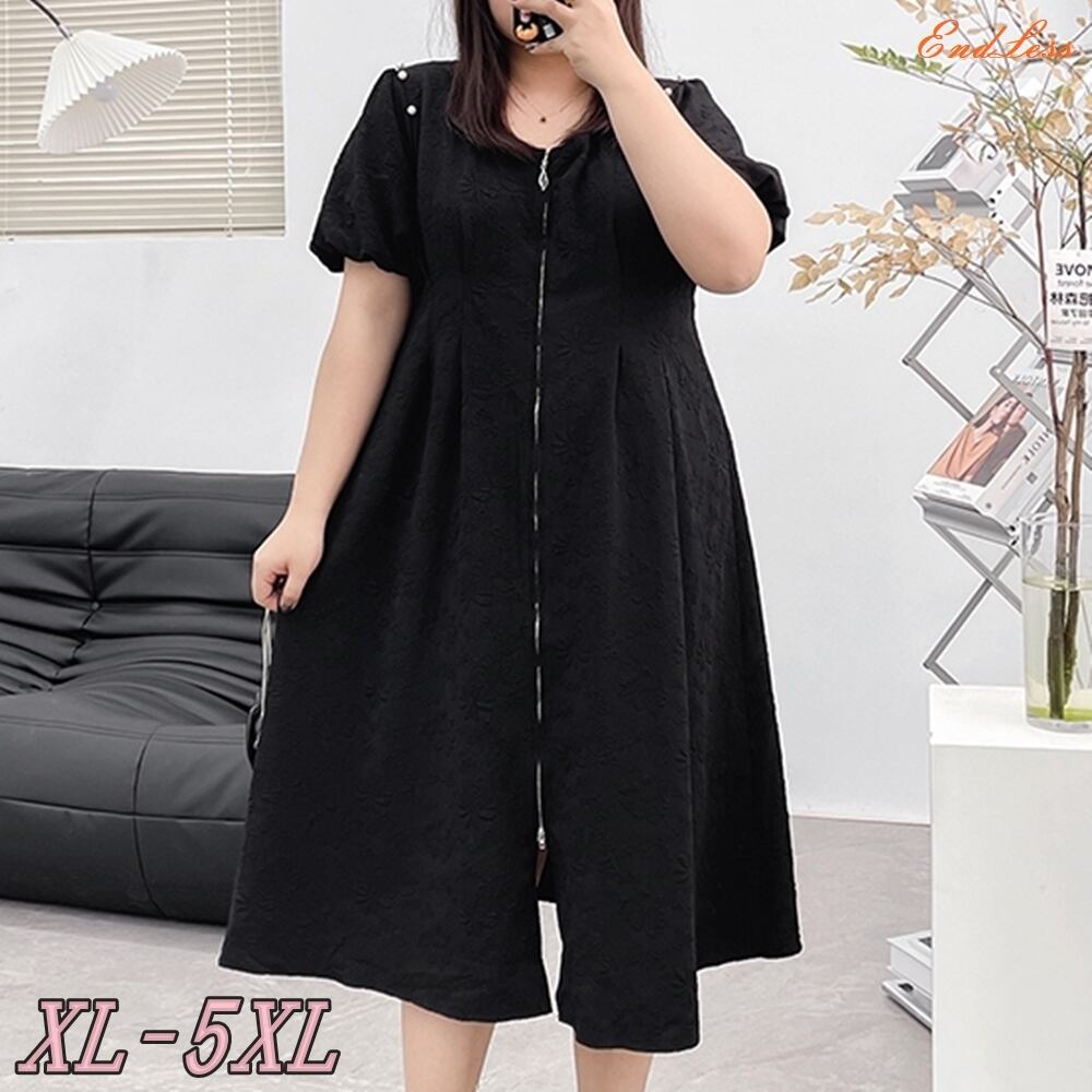 5XL -XL レトロ ハーバースタイル センタージッパー 半袖 ドレス ワンピース ゆったり グラマー 春 夏 大きいサイズ レディース 大きいサイズの店 通販 安い 5l 4l 3l 2l 1005