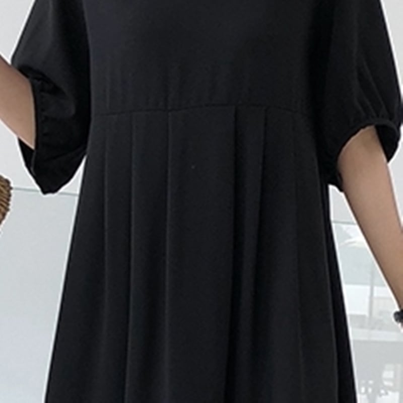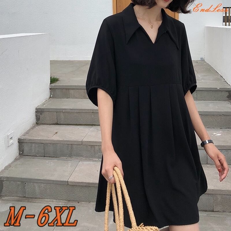 6XL -M ランタンスリーブ 五分袖 シンプル ブラック カジュアル ワンピース 黒 ゆったり グラマー 春 夏 大きいサイズ レディース 大きいサイズの店 通販 安い 6l 5l 4l 3l 2l 1008