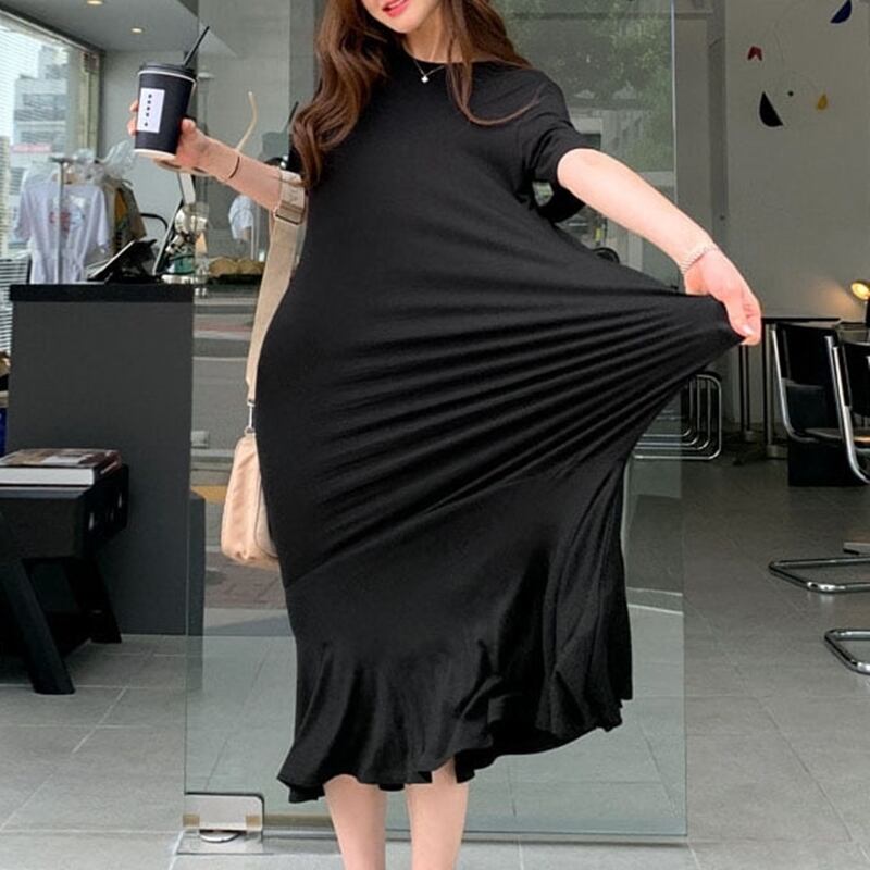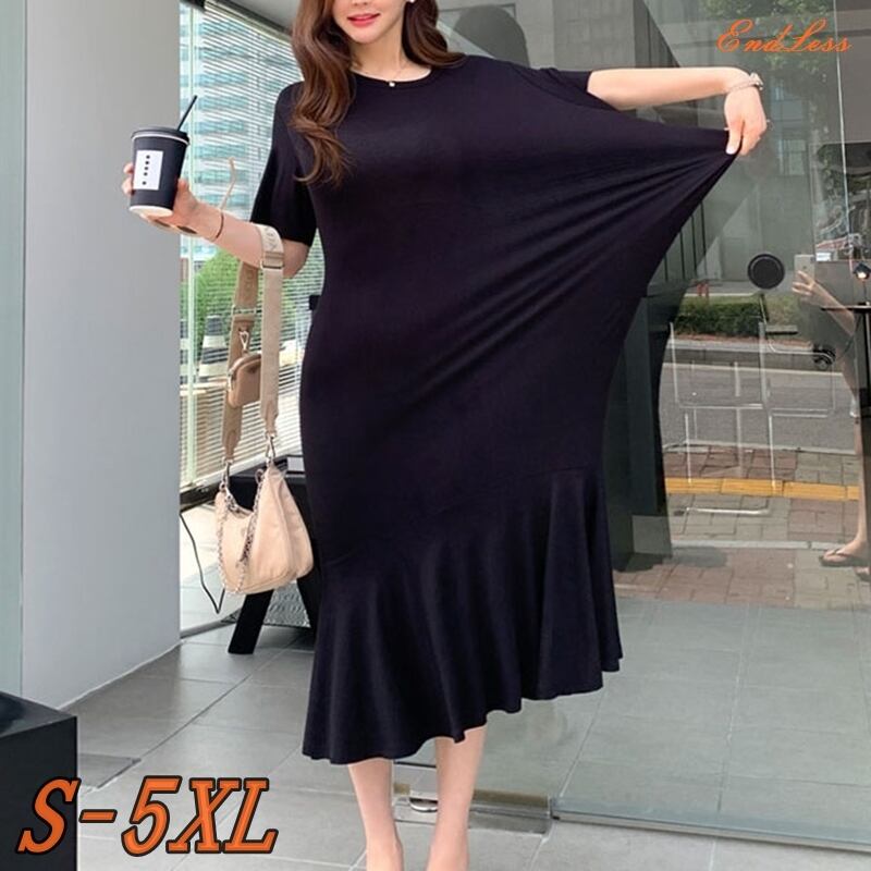 5XL - S フィッシュテール ボトム スカート 半袖 カジュアル ドレス ワンピース ゆったり グラマー 春 夏 大きいサイズ レディース 大きいサイズの店 通販 安い 5l 4l 3l 2l 1012