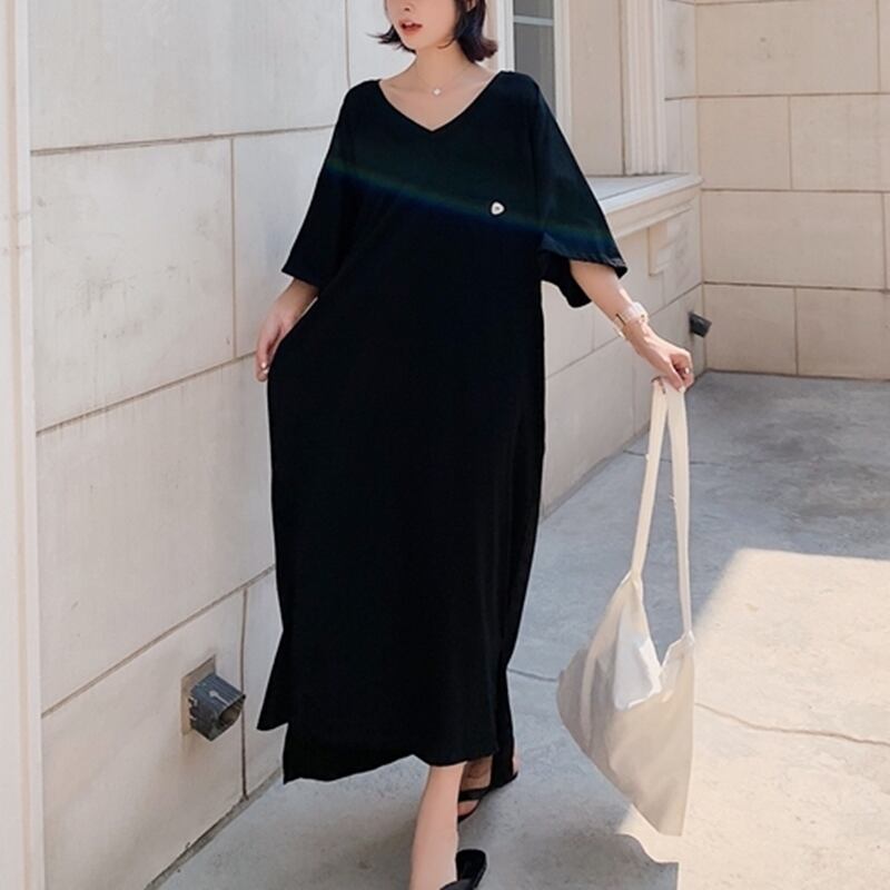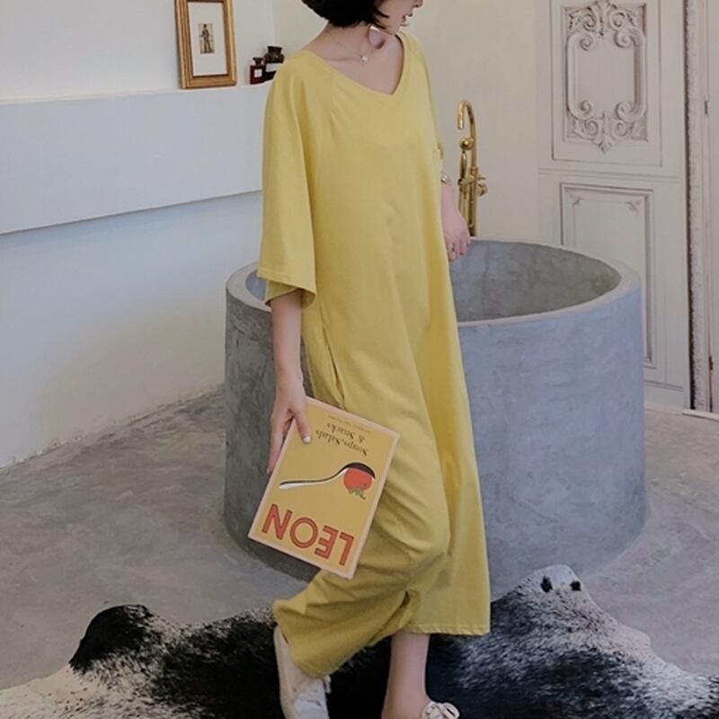 5XL - L vネック 長袖 コットン サマー カジュアル シャツ ワンピース ゆったり グラマー 春 夏 大きいサイズ レディース 大きいサイズの店 通販 安い 5l 4l 3l 2l 1013
