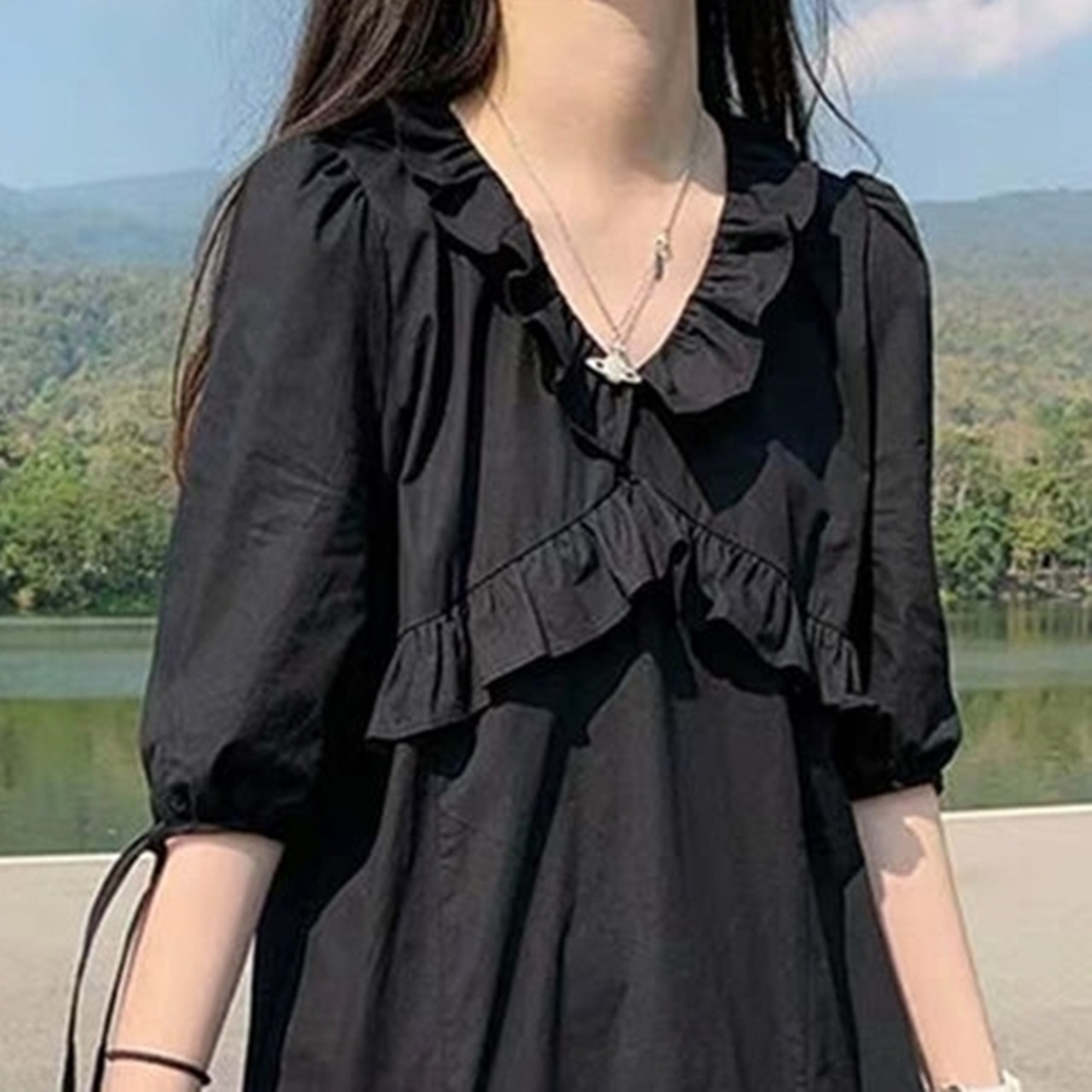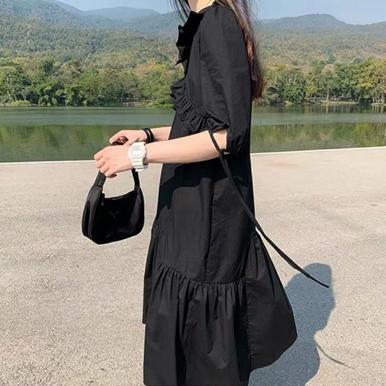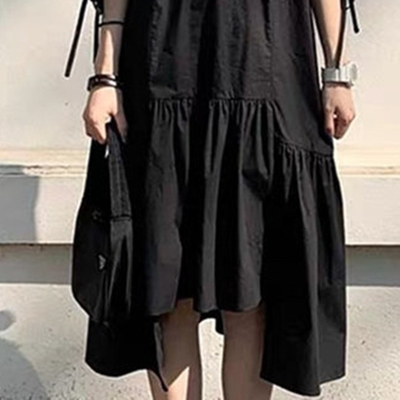 6XL - 2XL 特大サイズ 半袖 フリル 不規則スカート ブラック カジュアル ドレス ゆったり グラマー 春 夏 大きいサイズ レディース 大きいサイズの店 通販 安い 6l 5l 4l 3l 2l 1018