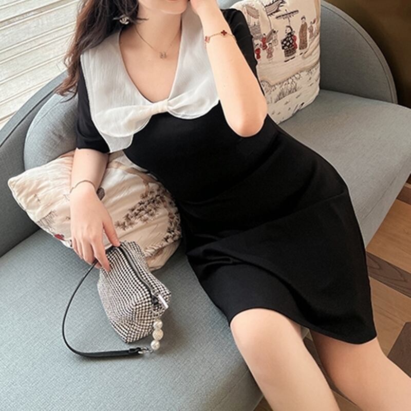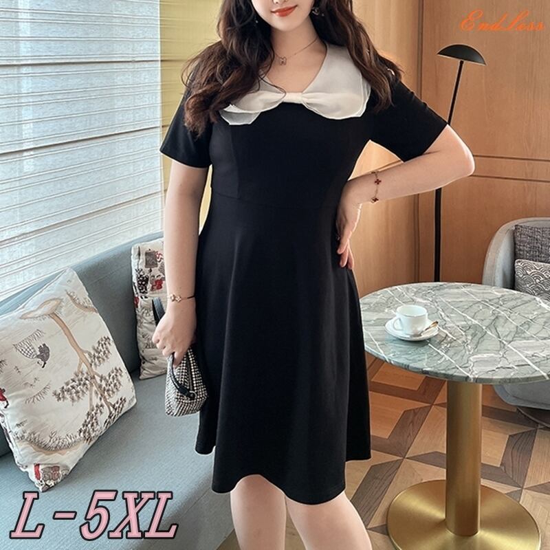 5XL - L 半袖 ラウンドネック カジュアル ブラック ドレス ゆったり グラマー 春 夏 大きいサイズ レディース 大きいサイズの店 通販 安い 5l 4l 3l 2l 1023