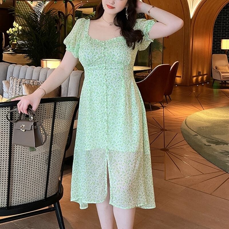 5XL - L 花柄 シフォン サマー カジュアル ドレス ライトグリーン ゆったり グラマー 春 夏 大きいサイズ レディース 大きいサイズの店 通販 安い 5l 4l 3l 2l 1024
