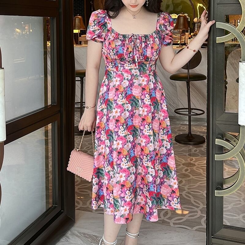 5XL - L 大きいサイズ 花柄 ドレス 半袖 ヴィンテージ サマー ドレス 大きいサイズ ワンピース ゆったり グラマー 春 夏 大きいサイズレディース 大きいサイズの店 大きいサイズ 服 通販 安い 5l 4l 3l 2l 1028