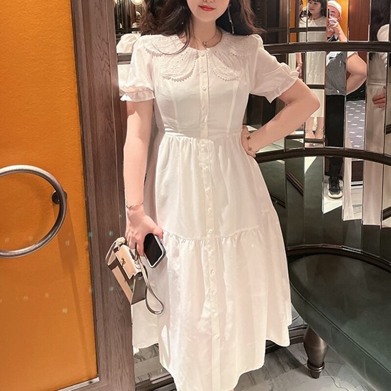 5XL - L 大きいサイズ ホワイト ドレス ゆったり カジュアル ドレスワンピース 演奏会 ワンピース ゆったり グラマー 大きいサイズレディース 大きいサイズの店 大きいサイズ 服 海外 店舗 通販 安い 5l 4l 3l 2l 1029