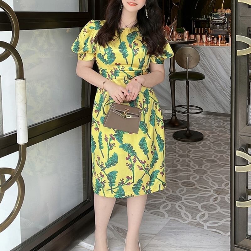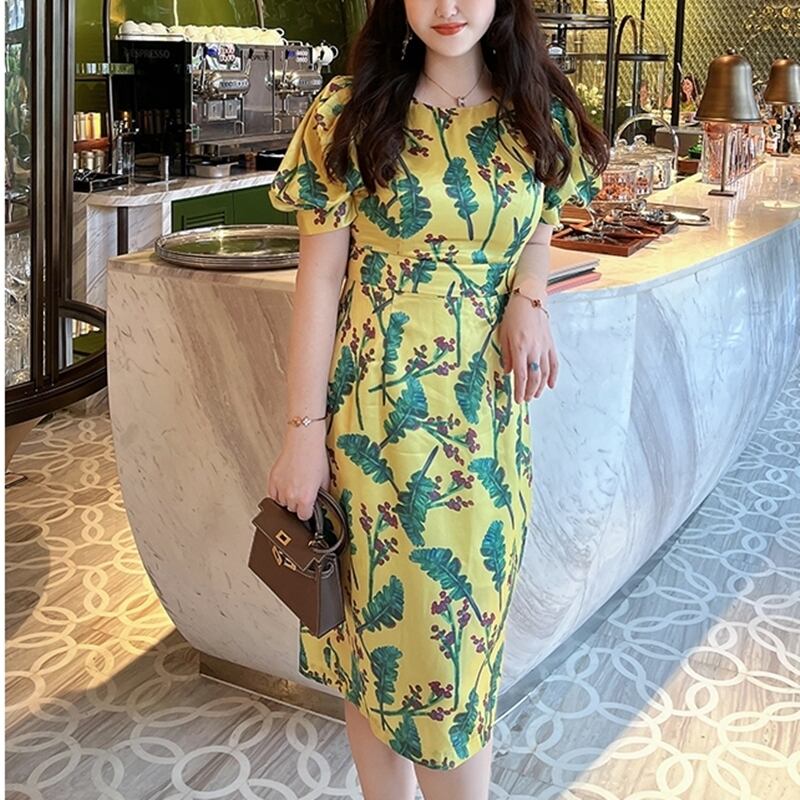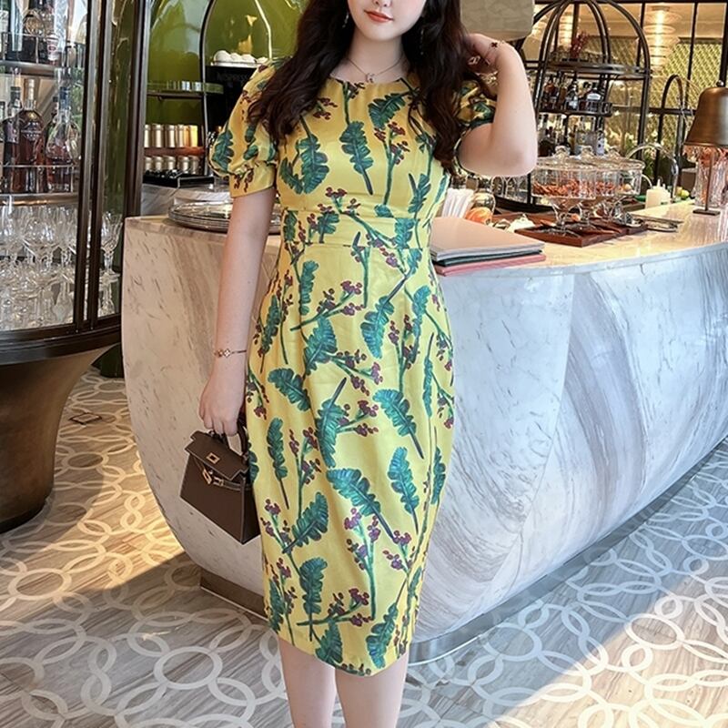 5XL - L 大きいサイズ 花柄 ドレス イエロー ワンピース 大きいサイズレディース 大きいサイズの店 大きいサイズ 服 通販 海外 安い 5l 4l 3l 2l 1031