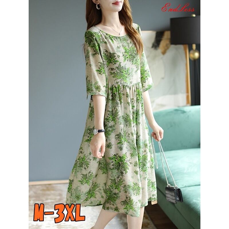 3XL - M 大きいサイズ ワンピース 半袖 ひざ丈 カジュアル ゆったりプリントスカート ドレス 大きいサイズの店 海外 安い 5l 4l 3l 2l M1041