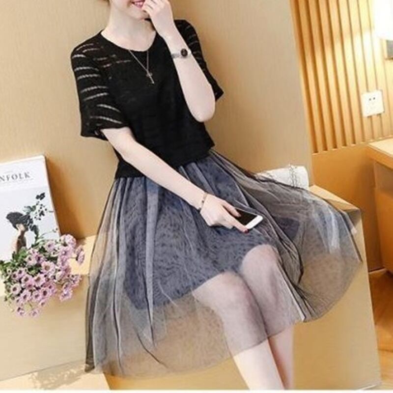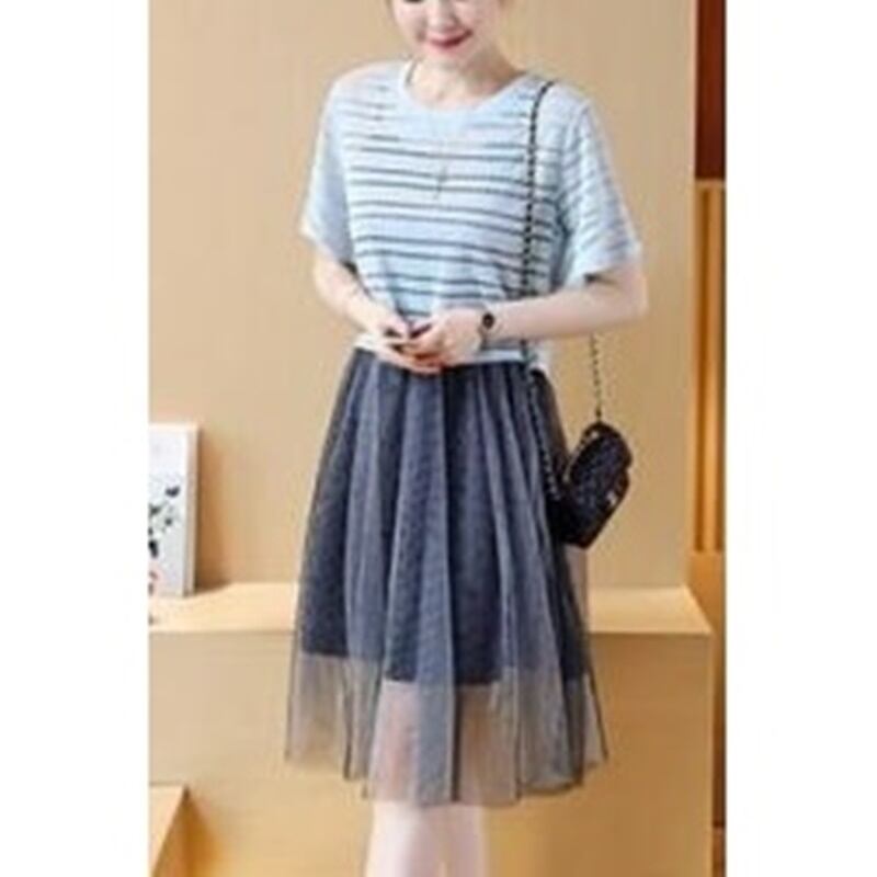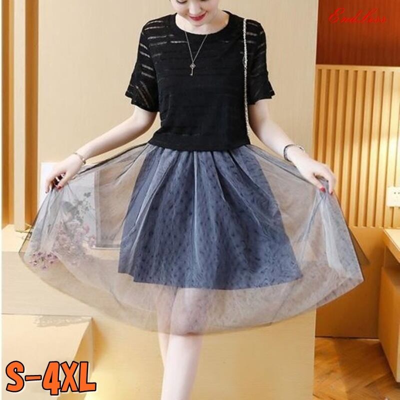 4XL – S 送料無料 半袖 メッシュ 2ピース トップス ワンピース サマー ドレス 夏 大きいサイズ レディース 大きいサイズの店 海外 安い 4l 3l 2l XL M1051