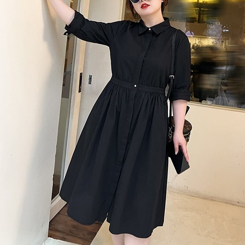 ・大きなサイズ 春 秋 スキニーシャツドレスです。