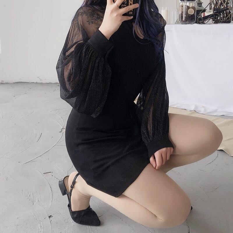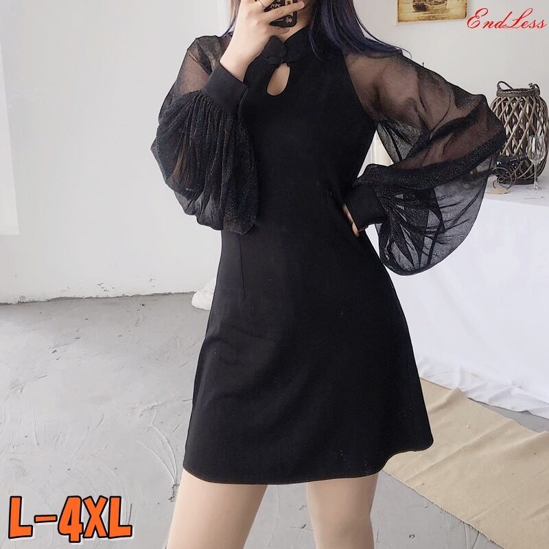 L – 4XL 送料無料 長袖 レース ブラック パーティー ミニ ドレス エレガント 春 秋 大きいサイズ レディース 大きいサイズの店 海外 安い 4l 3l 2l XL M1066