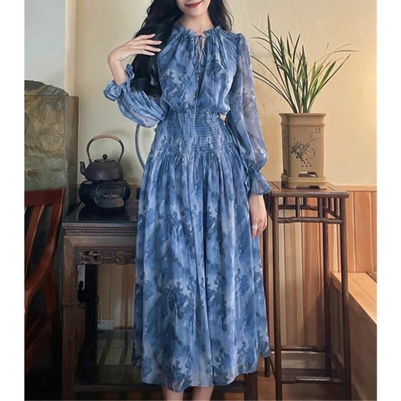 送料無料 大きめサイズ 花柄 長袖 ロング スカート ドレス 秋 大きいサイズ レディース 大きいサイズの店 海外 安い 4l 3l 2l XL M1069